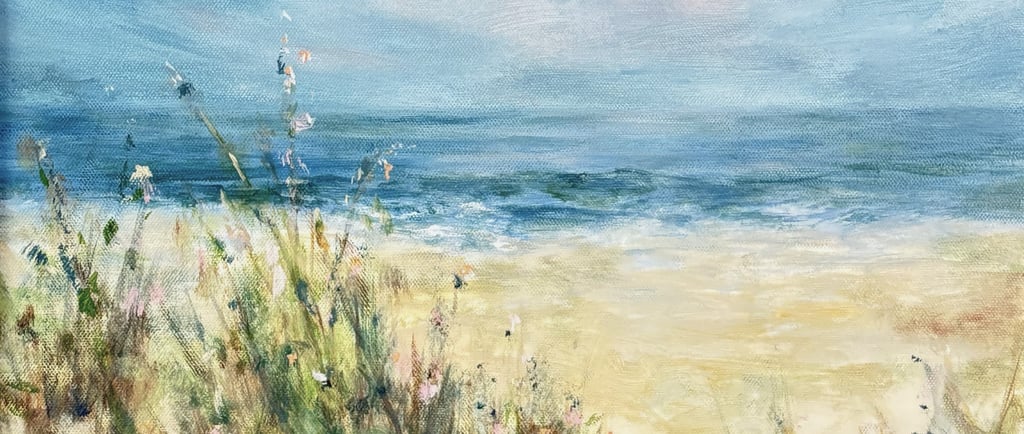 Layering and Mark-Making: This is where the energy comes in. I apply paint with rapid, decisive strokes. The texture of the paint itself becomes part of the storytelling. Scraped lines suggest wind-blown grass; thick white paint become the foam of breaking waves, thin washes become the tumbling waves.